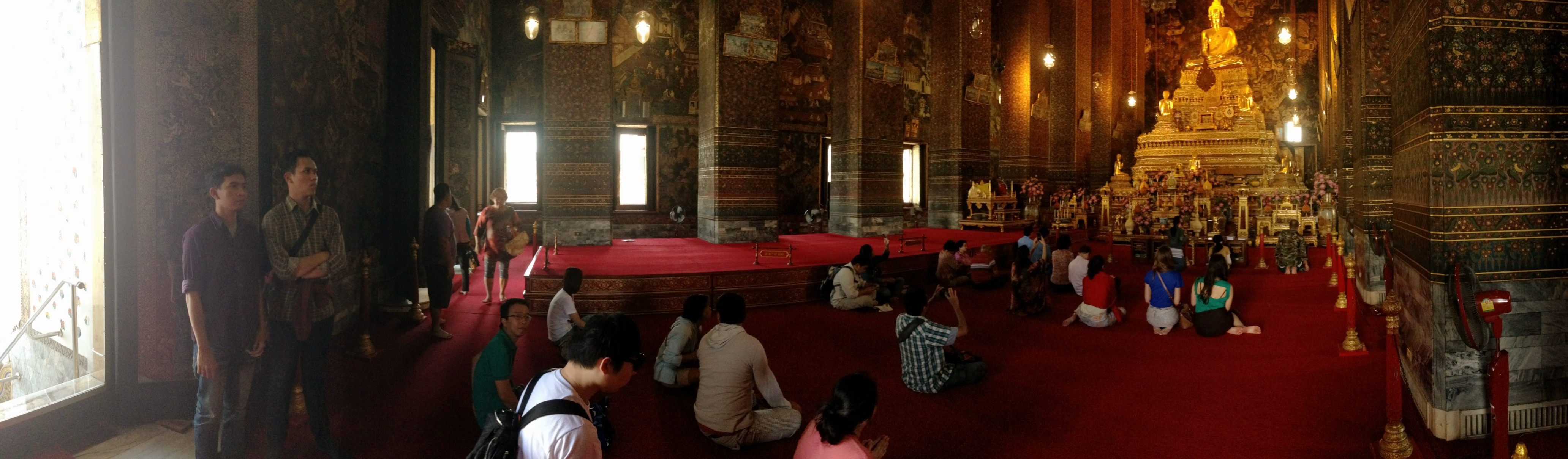 So next, I visited Wat Pho – Wat Phra by Tuk-tuk to see the Reclining Buddha. Tuktuk was efficient. I mean, it was cheap. At THB100, the three of us could travel 30 mins from Hua Lamphong to Wat Pho. I didn’t know the place was that far! But of course, the dirt and pollution were the drawbacks of riding tuktuk. To enter Wat Pho you need to buy the tickets sold at THB100. We spent quite some time walking around this huge place from 1300hrs to 1430hrs. Even Obama went to this place when he visited Southeast Asia. You have to visit this place too.