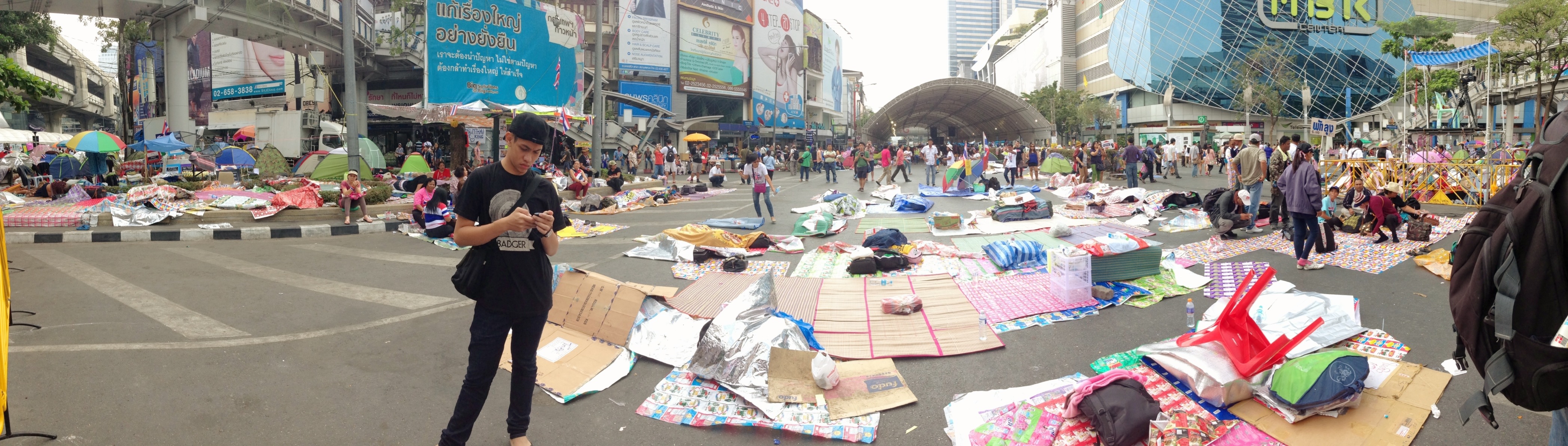 We went out to see the remaining of the protesters at the closed junction in front of the siam area. There were local presenters on stage who explained the atmosphere there in english. Tomorrow’s the voting day and they plan not to vote. There were other camp areas around Bangkok doing the same thing. I wonder what would happen tomorrow!
