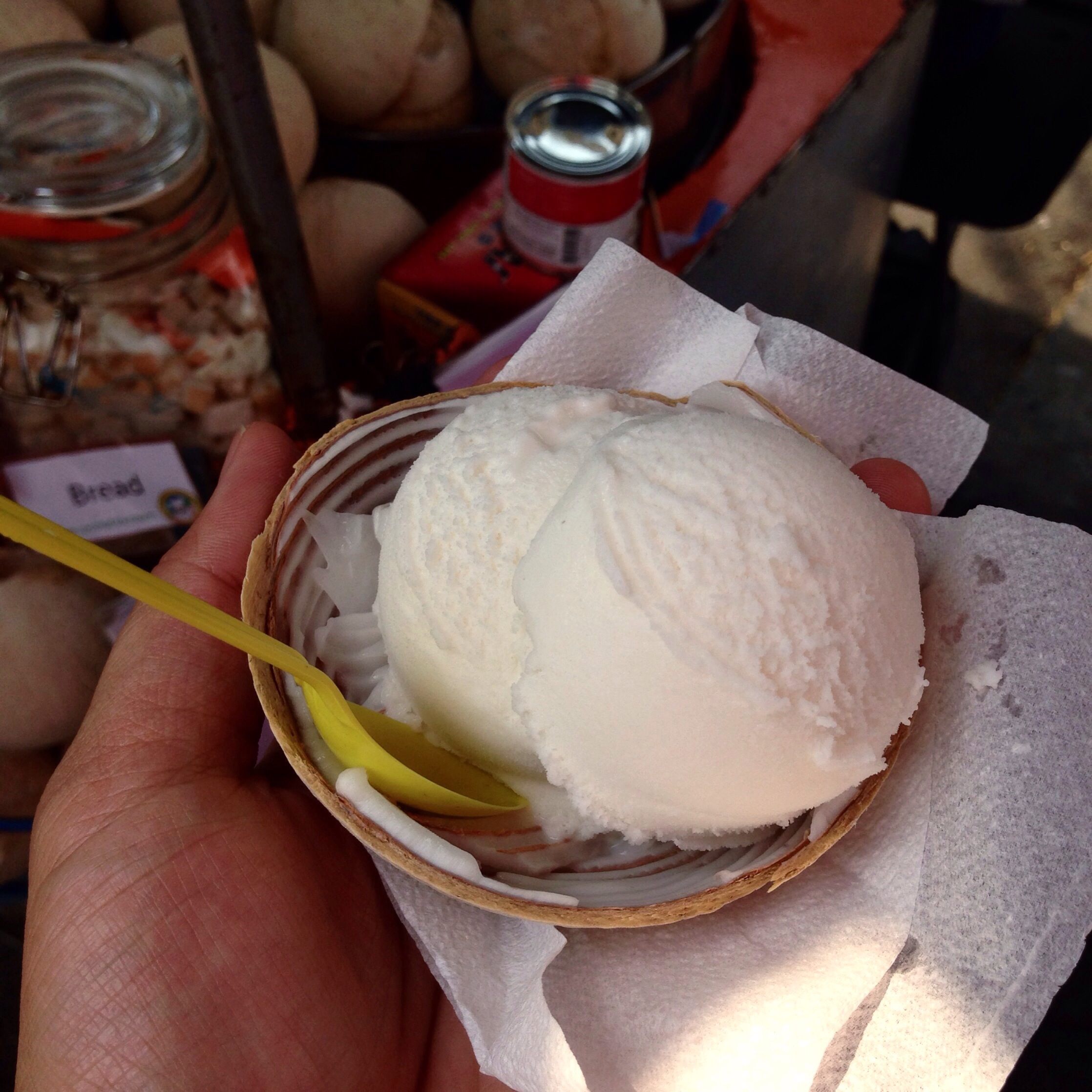 Chatuchak, omg, chatuchak. Lots of things were there. This is the place to buy gifts and try street food of Thailand! The place was packed with tourists. It reminded me of Taiwan’s Shilin Night Market, but this one opens since morning! The weather was hot but nothing stopped me from walking around under the hot sun. Try the fresh orange juice or the coconut ice cream to cool yourself down. Don’t forget to try the unbeatable Thailand’s original mango sticky rice, which I bought twice for THB40 each. I also tried Pad Thai, a Thailand dish of thick fried noodle served with nuts and bean sprouts.