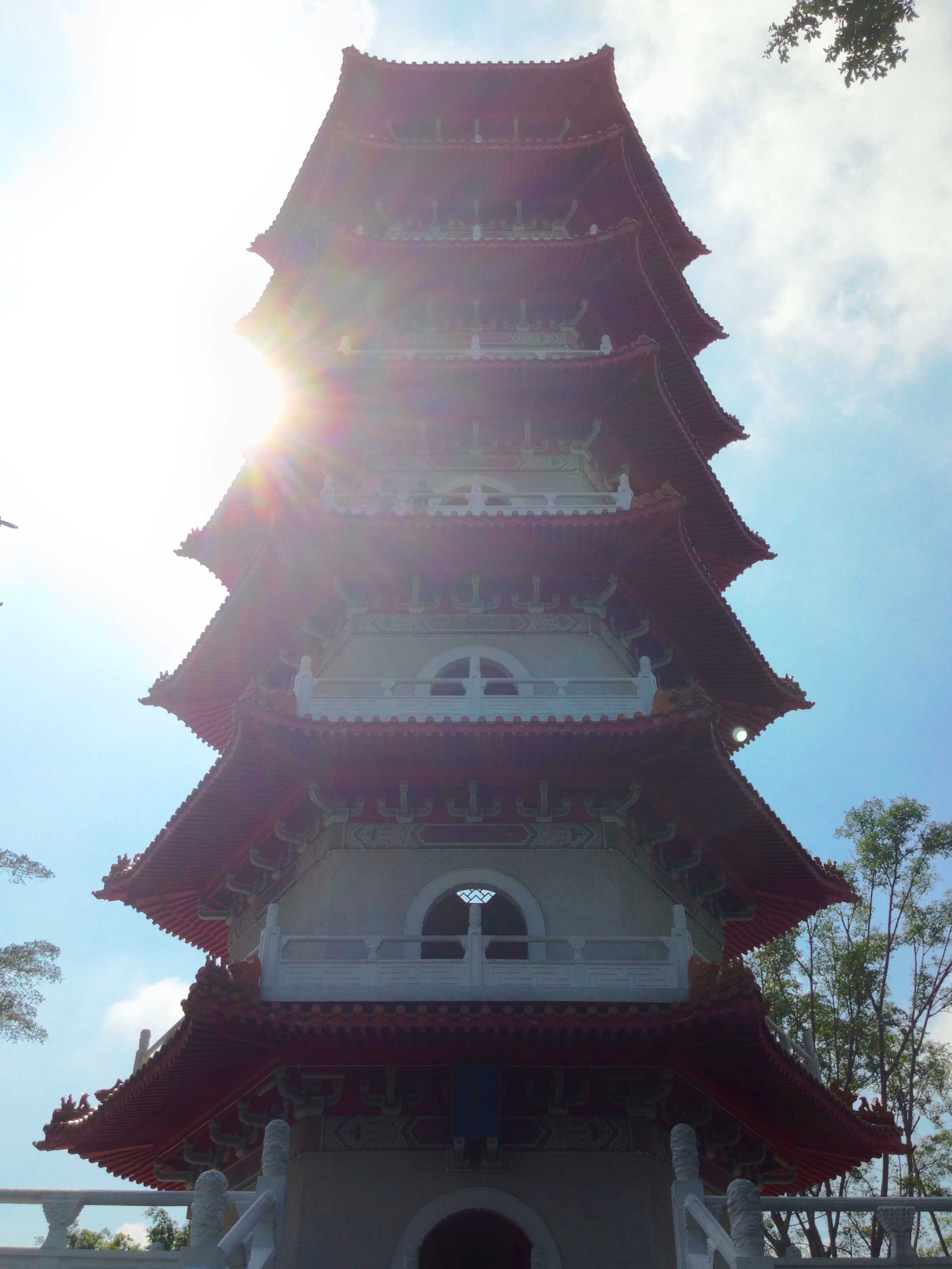 There was a seven-storey tall pagoda at the garden that I never had the intention to climb. It was really sunny at 10am and was 29 degree. I thought taking a close look at the pagoda won’t hurt. And I could take a short rest from jogging 3 kilos. When I reached the entrance of the Pagoda, I saw a white cloth, which I thought was covering a dead body with a feet coming out from it. It turned out to be a bride-to-be in her wedding dress laying at the centre of the Pagoda. The groom quickly joined her after a quick touch up to his coat behind the entrance door. Seeing the couple snuggling on the floor, I knew that a photographer must be up there taking a picture. So I ran up the Pagoda to the 7th storey to have a look of how it looks like with them laying at the centre.