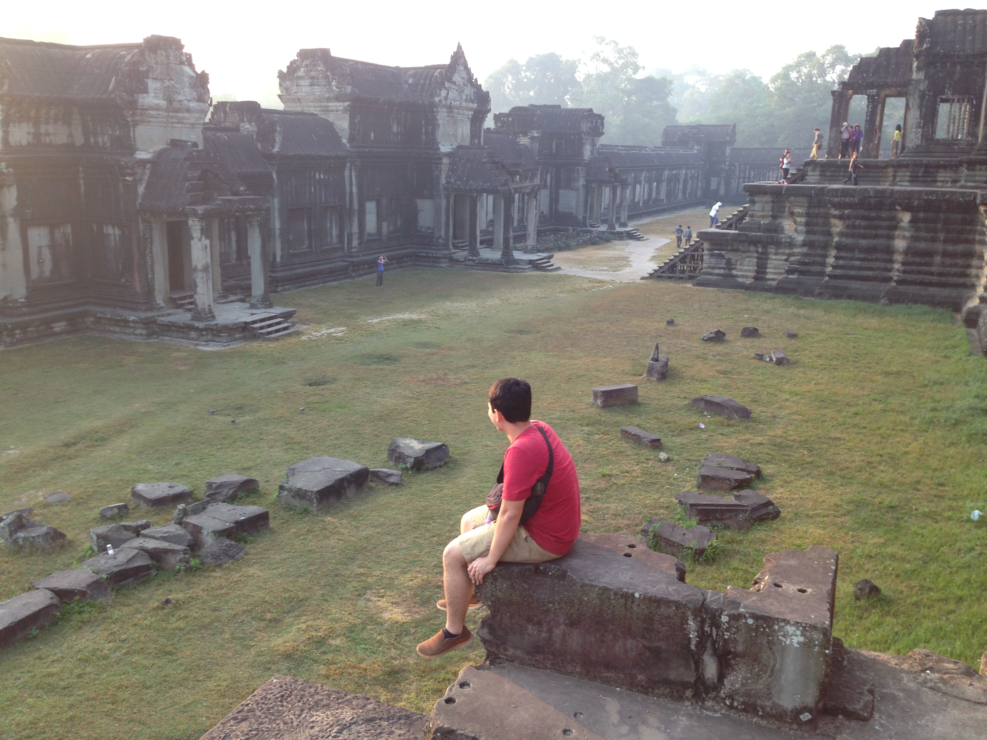 Enjoying the morning dew on top of Angkor Wat Temple in Siem Reap, Cambodia.