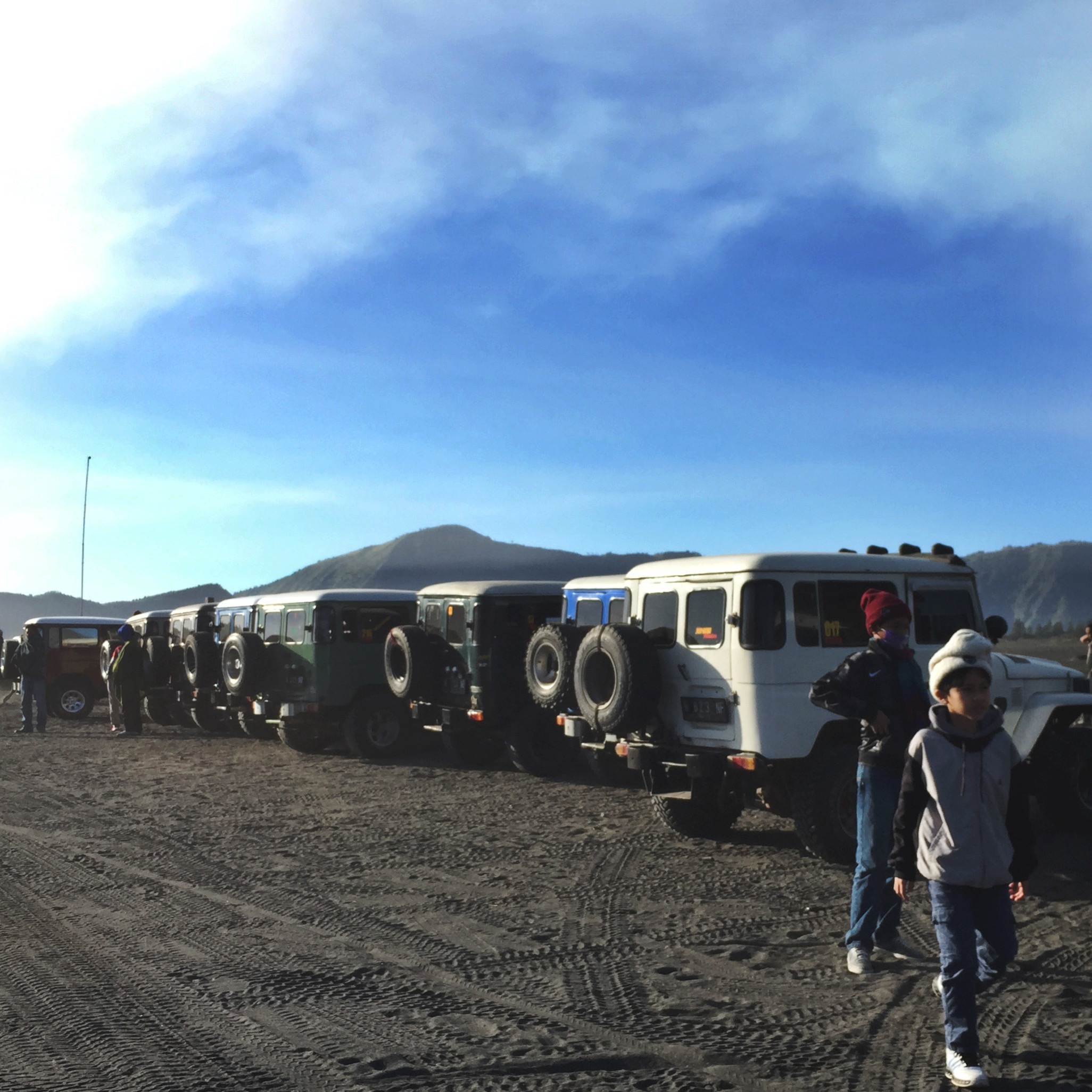 Wearing a mask was such a blessing. Although it was thin, my breath kept my mouth and nose warm. Also, it protected me from the dust when passing by the sea of sand with jeeps ahead of us. Dust. Dust everywhere.