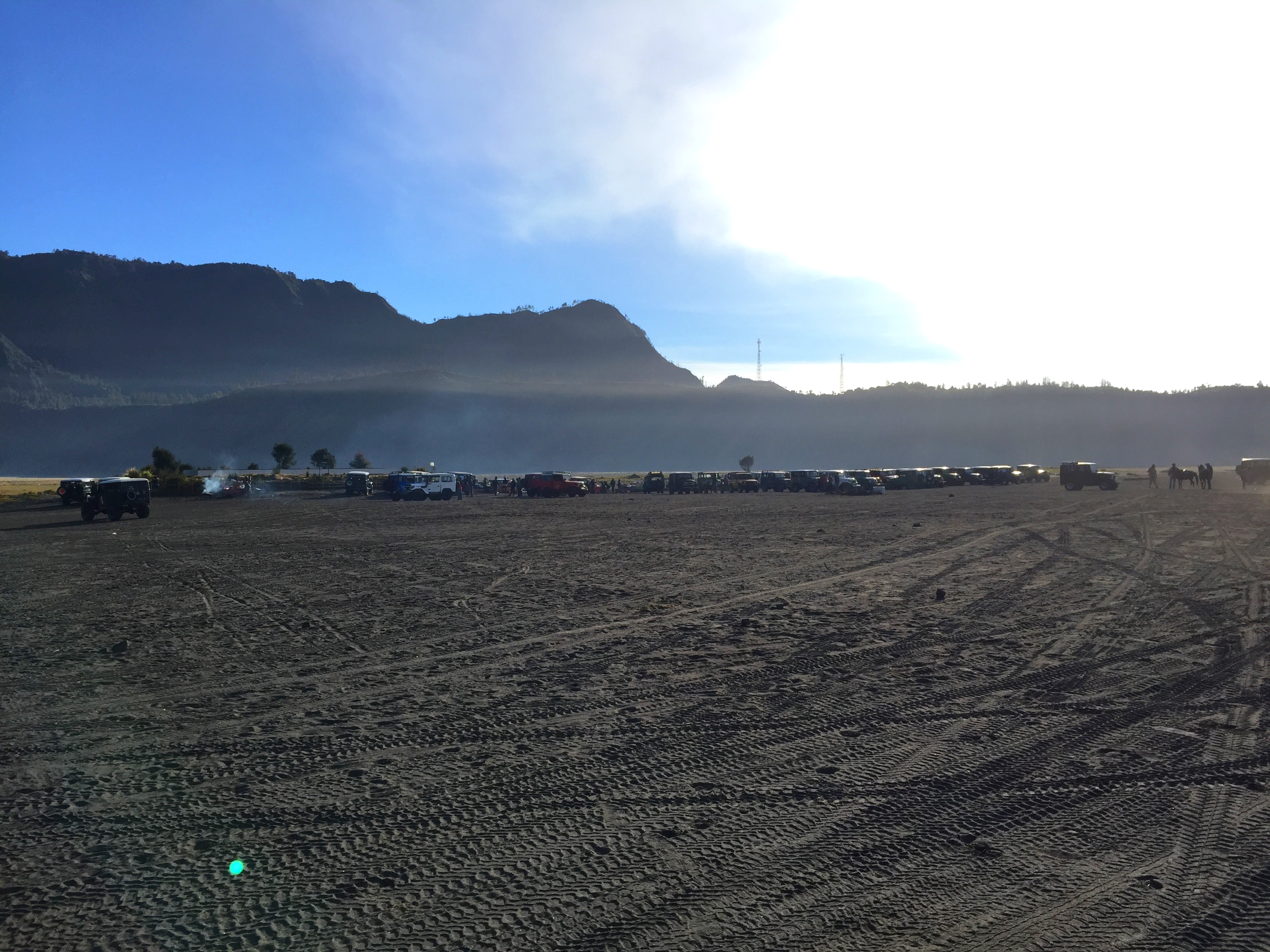 Jeeps were queuing to get out of Cemoro Lawang. Lucky, I was on an ojek and it could queeze its way out pretty fast. Again, I had to use more of my thigh muscle power to push myself up so I don’t press my whole body weight on my driver on the way down. But at the same time, I had to hold on the handle at the back of the motorbike. Holding on the handle was like touching ice. The trip was worsened by my lack of preparation having only a hoodie jacket on. The morning wind blew on my face and froze my ears! I should’ve bought a beanie. At first I felt the pain, but after 5 minutes or so, I couldn’t feel my ear anymore. Bad or nah?