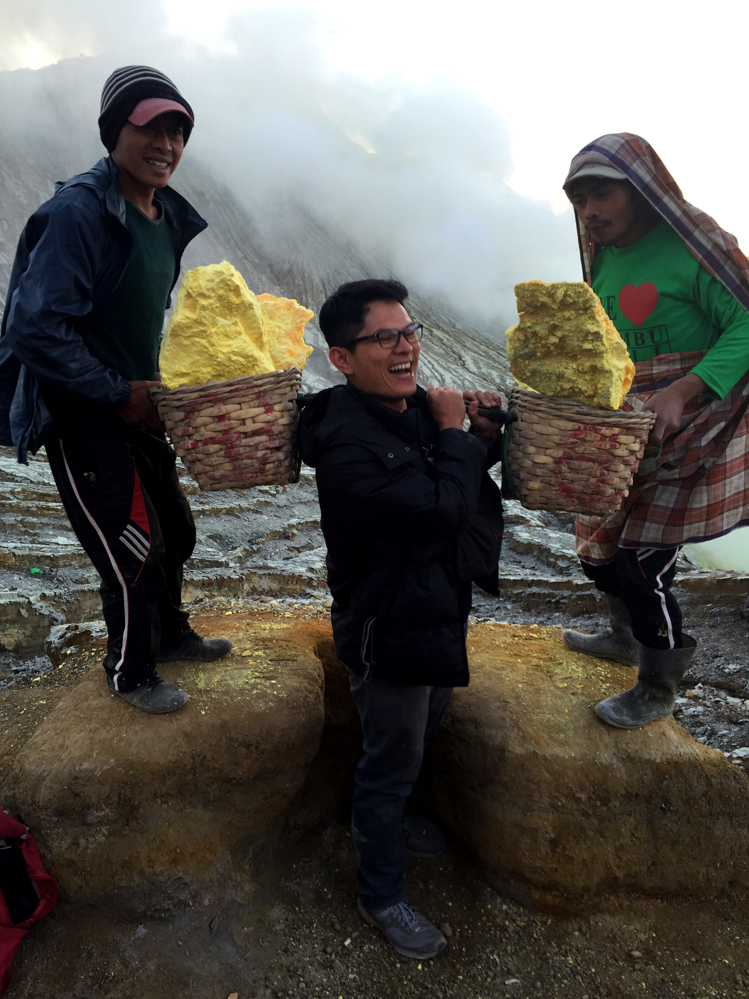 I was really happy when I got to the flat surface that I had been hoping for. But we had to go down to the crater to see the blue fire and man, it was a tedious journey. But the blue fire at the bottom of the crater was surreal. So, going down to the crater was worth the sweat! I couldn’t take a good picture of it, mostly because I was so indulge in admiring it. It was like watching a sci-fi movie, with really good CG. Except it was real. So majestic. I tried to get around the crater to get a good look of the fire, but the sulfur smoke was terrible when it got my way. I was only wearing a simple surgical mask. Some people rented special breathing masks from the guides. But I wondered how many people had used the thing before them. Anyway, my simple mask helped a lot, still. N95 would have been better.