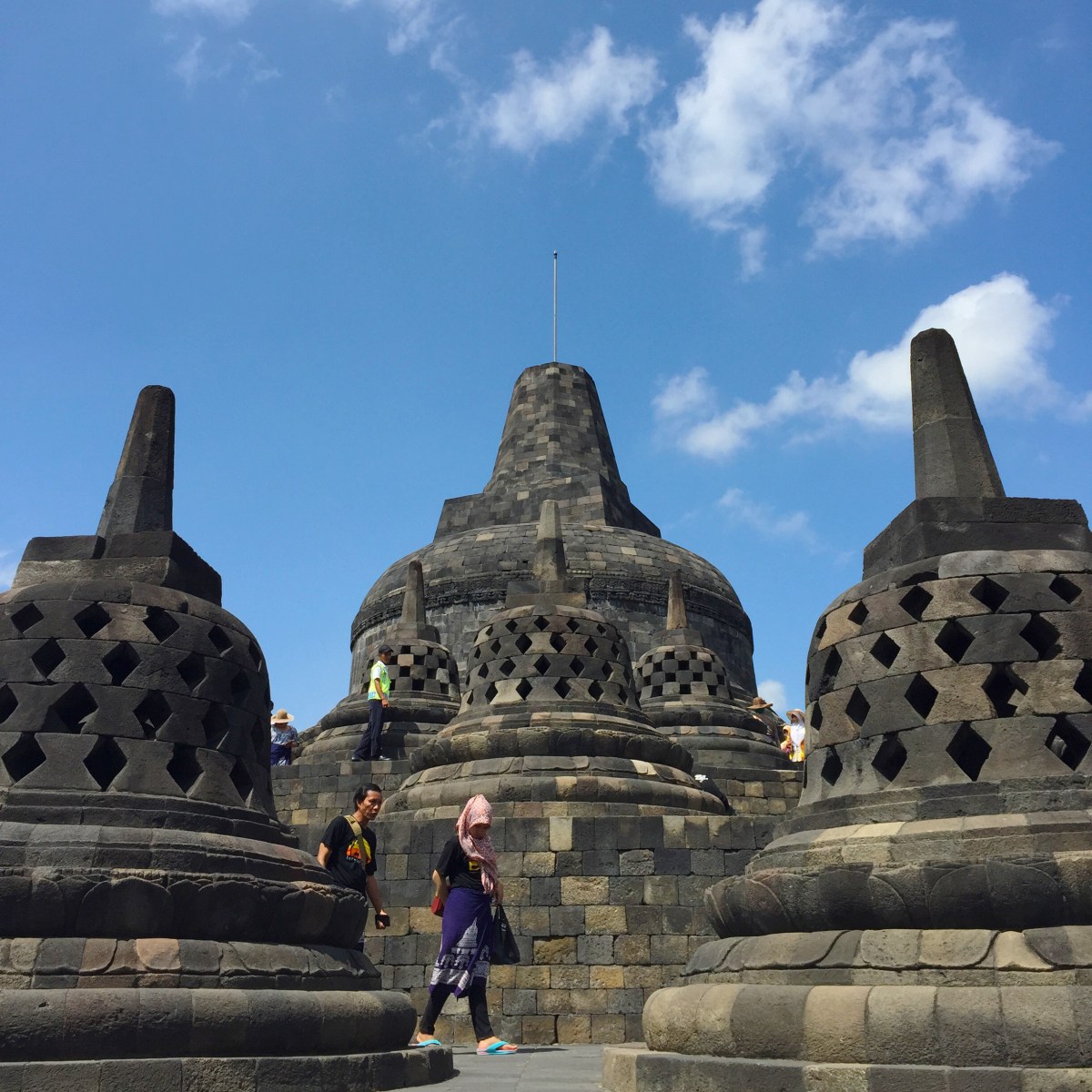 I was very excited to see Borobudur and walked right behind the guide, totally forgetting the group I was with. Lovely view, right?