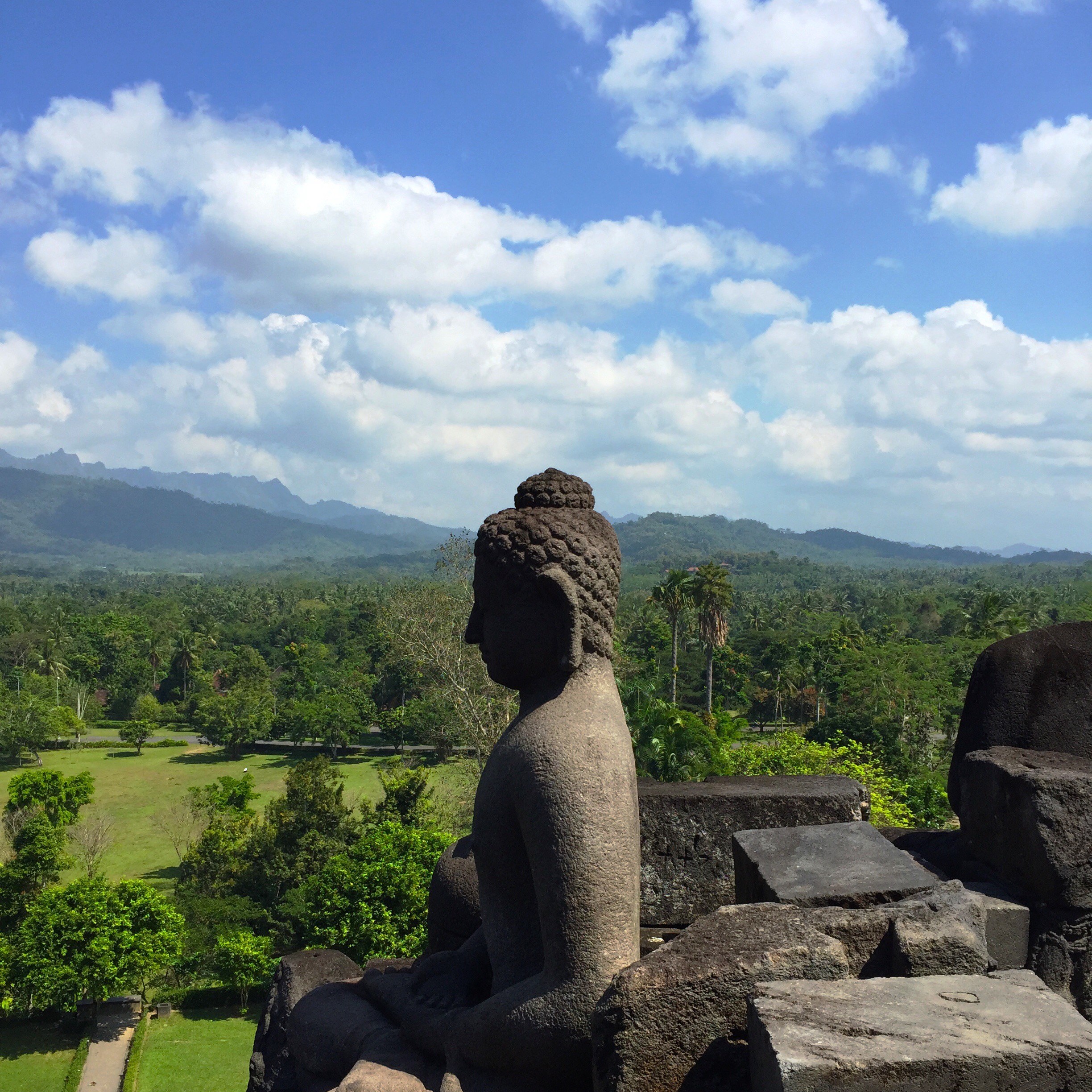 I was very excited to see Borobudur and walked right behind the guide, totally forgetting the group I was with. Lovely view, right?